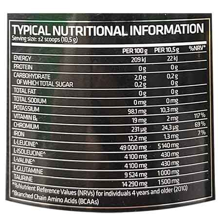 این نسبت نشان دهنده ال لوسین بالا است که به سنتز پروتئین عضلانی کمک می کند که منجر به عملکرد شدید و ساخت و نگهداری عضله بدون چربی و خشک می شود. به این مکمل بدنسازی گلوتامین اضافه شده تا به ریکاوری و محافظت از عضلات کمک کند. BCAA برای کمک به عملکرد بهتر و طولانی تر؛ افزایش توده عضلانی بدون چربی و ریکاوری سریعتر طراحی شده است.