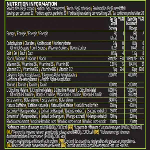 یک الی دو پیمانه از مکمل (تقریباً 15 گرم) را در حدود 200 تا 250 میلیلیتر آب حل کرده و 20 الی 30 دقیقه قبل از تمرین میل نمایید.